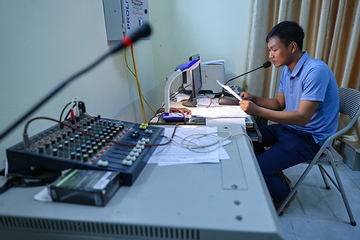 Đều đặn 3 năm qua, công việc thường nhật của anh Ngọc Văn Hợp (SN 1989), cán bộ Đài truyền thanh xã Long Sơn bắt đầu từ 5 giờ sáng. Kiểm tra máy móc, vận hành hệ thống tiếp sóng phát thanh 3 cấp (T.Ư, tỉnh và huyện) và đọc bản tin đã được duyệt.