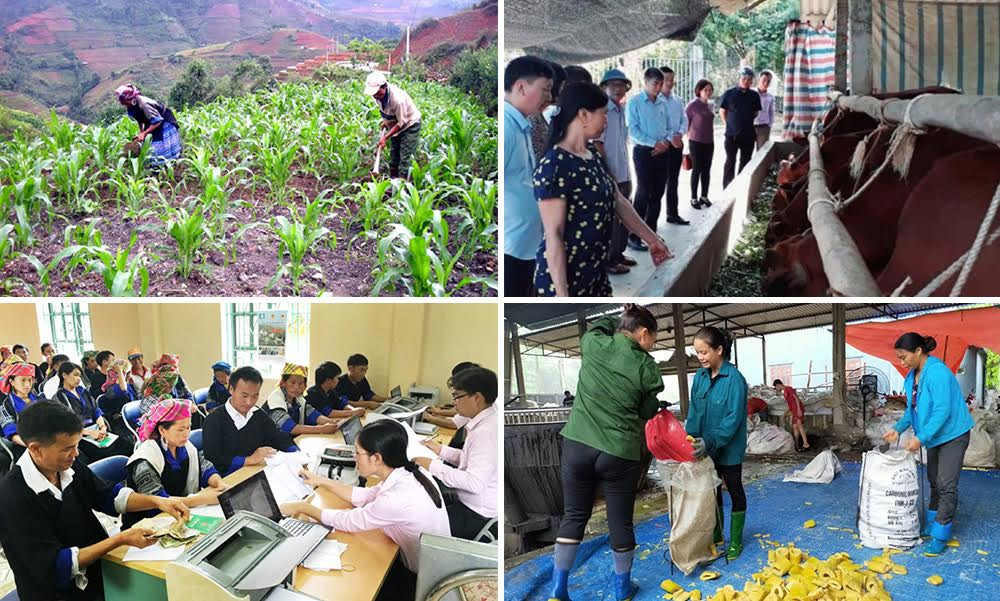 Hỗ trợ tư liệu sản xuất, kết hợp với vận động đồng bào dân tộc thiểu số vùng cao đổi mới phương thức tổ chức sản xuất để nâng cao năng suất, chất lượng, giá trị sản phẩm; đồng thời mở rộng liên kết sản xuất (theo nhóm hộ, tổ hợp tác, hợp tác xã). Hướng dẫn các hộ nghèo, cận nghèo vay vốn phát triển sản xuất; chuyển giao khoa học kỹ thuật; hỗ trợ bao tiêu sản phẩm cho hộ nghèo.
